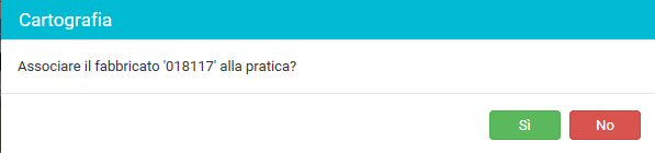 ![]() Viene chiesta la conferma per l'abbinamento del codice alla pratica edilizia. Confermando il codice sarà riportato nei dati territoriali della pratica.