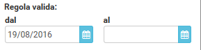 Immettere le date di validità della regola. Se non si compilano le date la regola vale sempre. Se non si compila la data finale la regola vale dalla data iniziale e per sempre.