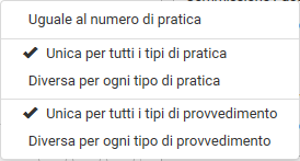 ![]() Inserire il tipo di provvedimento (desunto dalla tabella Esiti finali ) e la numerazione assegnata, che può essere automatizzata con il tasto